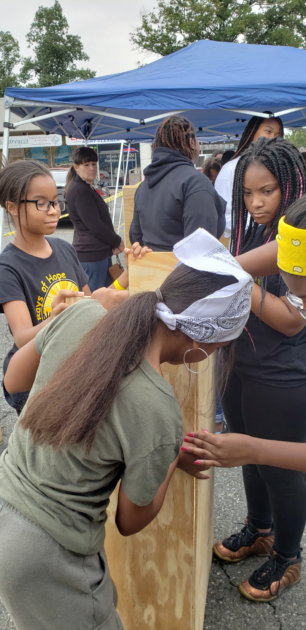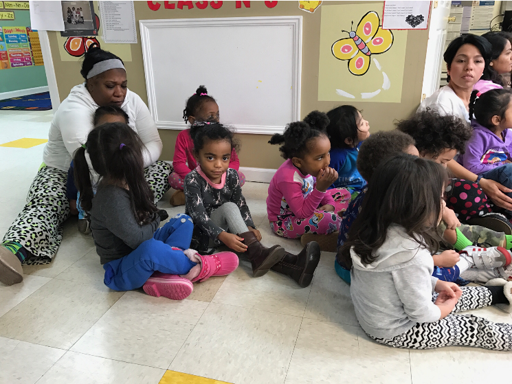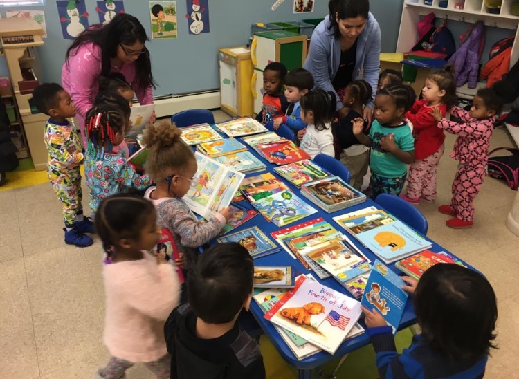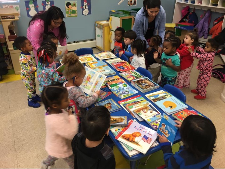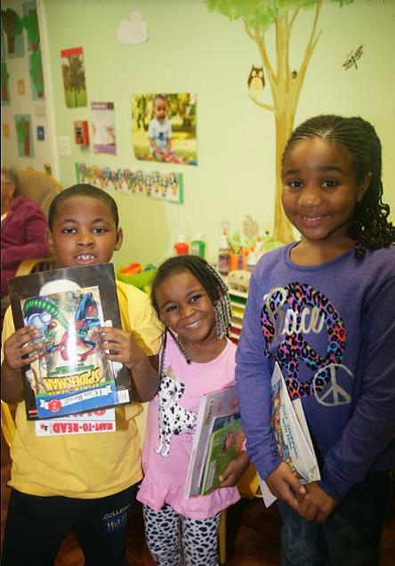 Visiting the Step One Academy Day Care Center. They were thrilled to have new books and 2 bookshelves.